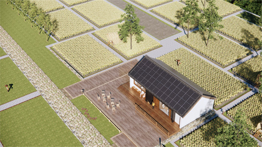 打造集遮风挡雨、休闲纳凉、绿色发电为一体的国风长廊,全装配式,安全稳固,提升乡村道路景观与人居环境。
